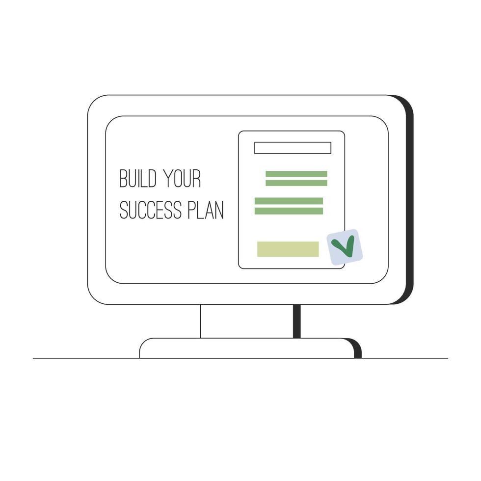 Build your success plan. A computer monitor screen with an image of a signed contract. Vector illustration in outline style Pro Vector