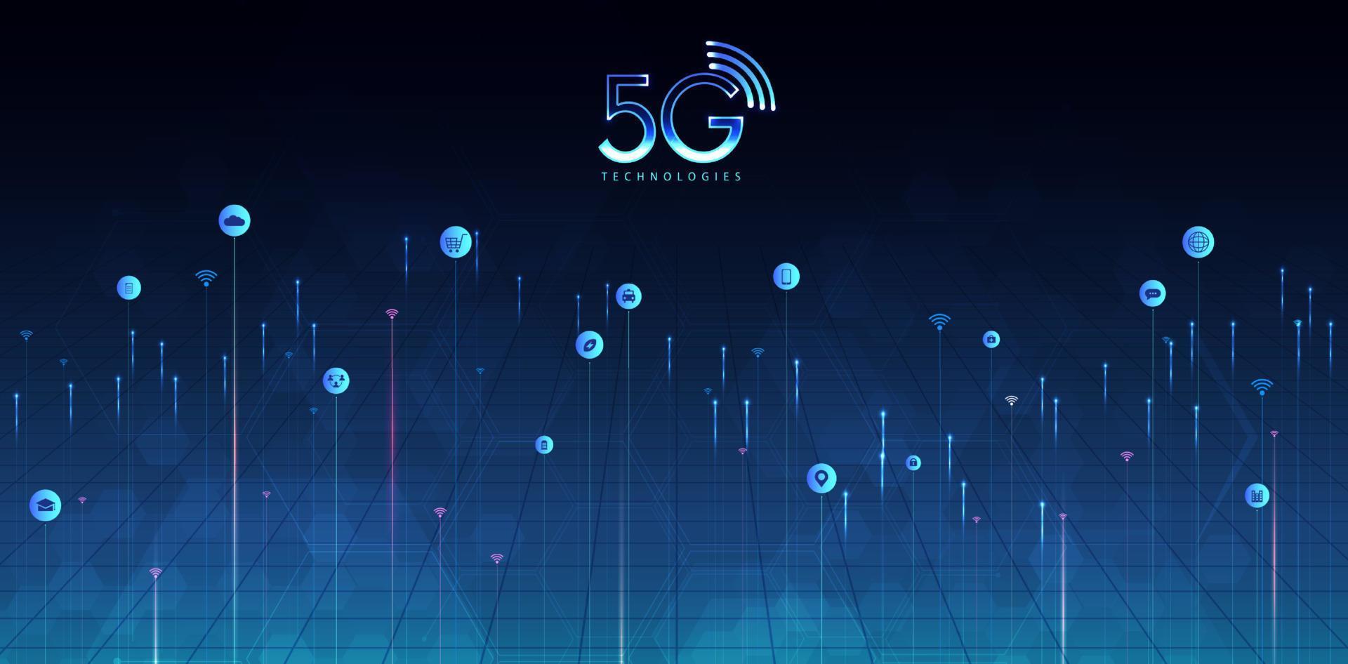 5G technology with computer network connection line between building. Connectivity and global networks systems and internet of things concept. vector design. Pro Vector