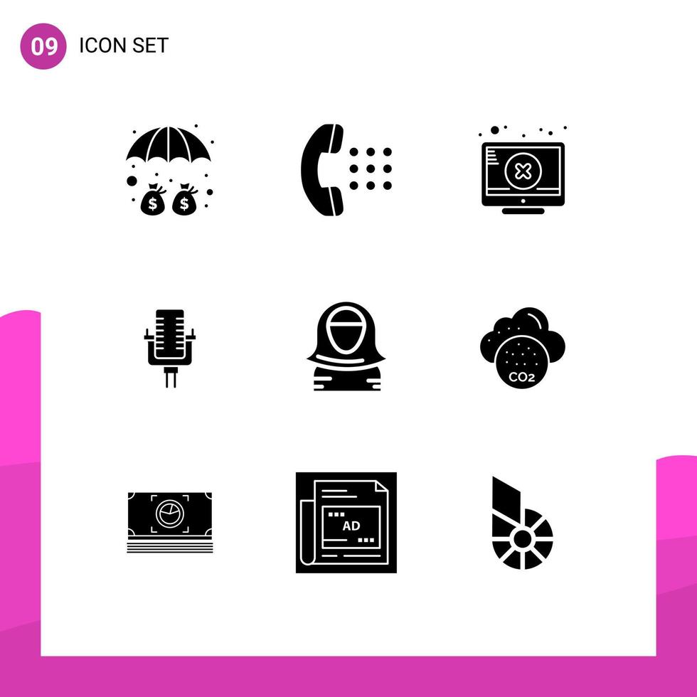 Set of 9 Modern UI Icons Symbols Signs for avatar song screen record microphone Editable Vector Design Elements