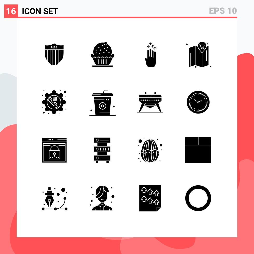 Set of 16 Modern UI Icons Symbols Signs for call cart finger location up Editable Vector Design Elements