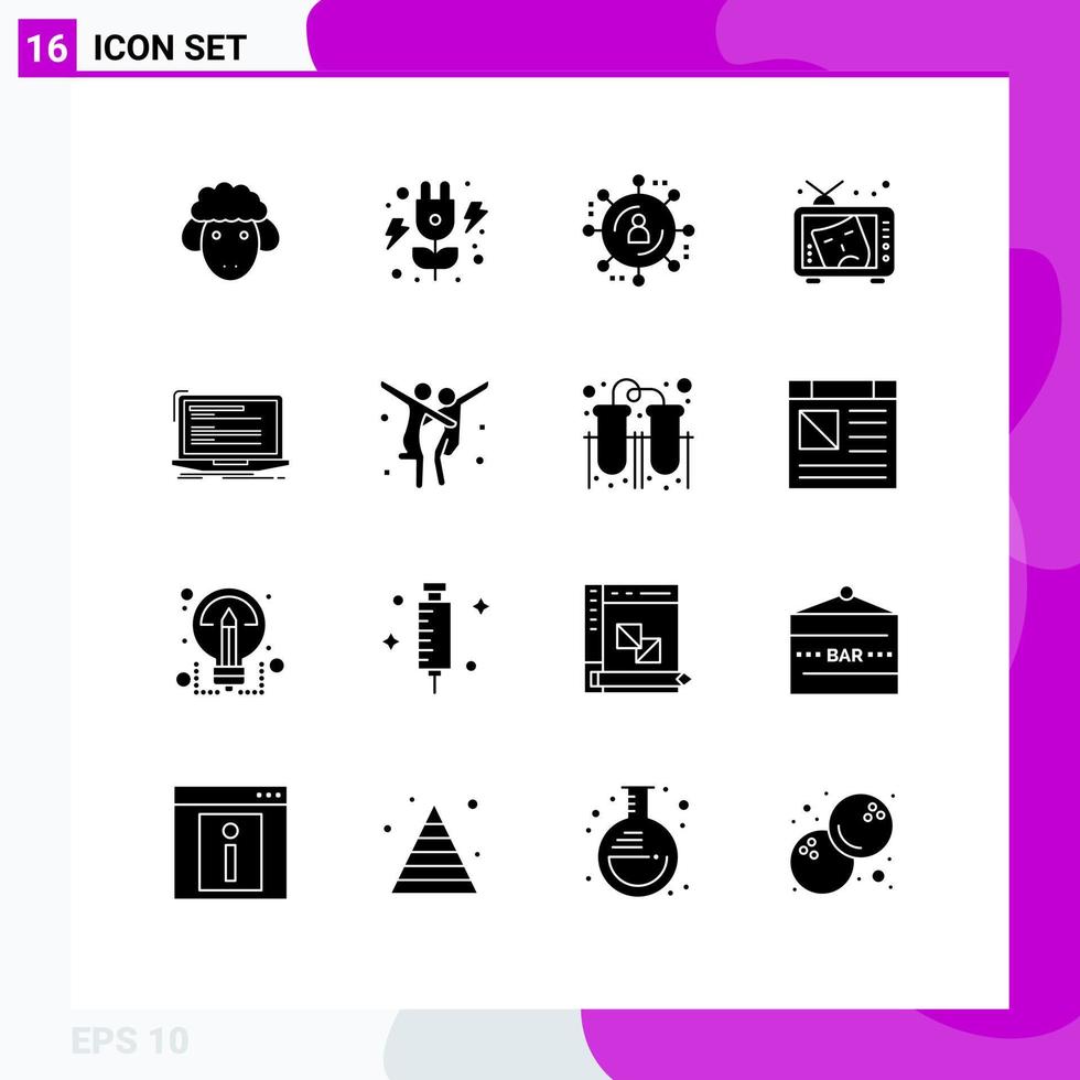 Group of 16 Solid Glyphs Signs and Symbols for computer code internet advertising paint art Editable Vector Design Elements Free Vector
