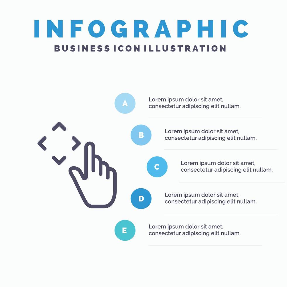 Finger Up Gestures Move Line icon with 5 steps presentation infographics Background vector