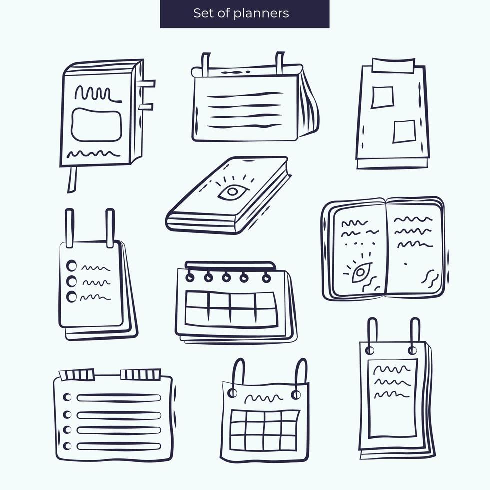 Set of planners and notebooks. Notebook with checked tasks. Pro Vector