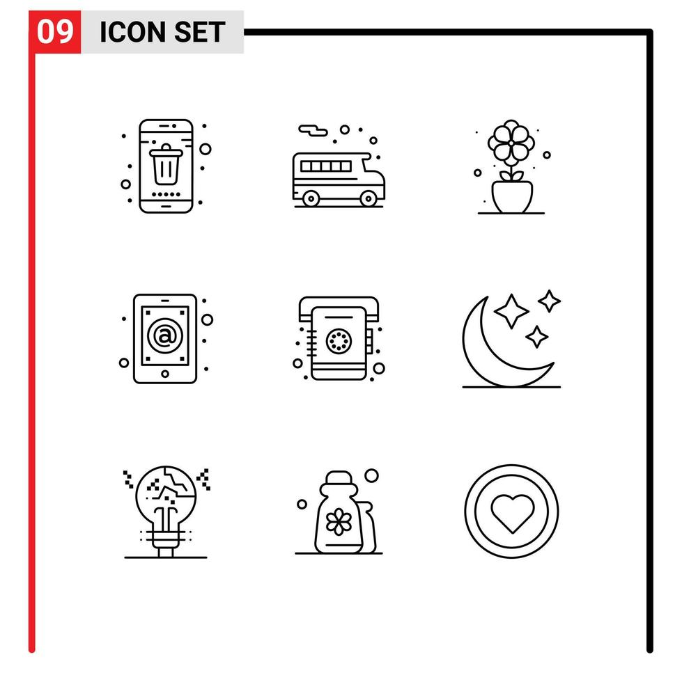 Universal Icon Symbols Group of 9 Modern Outlines of phone mail flower inbox app Editable Vector Design Elements