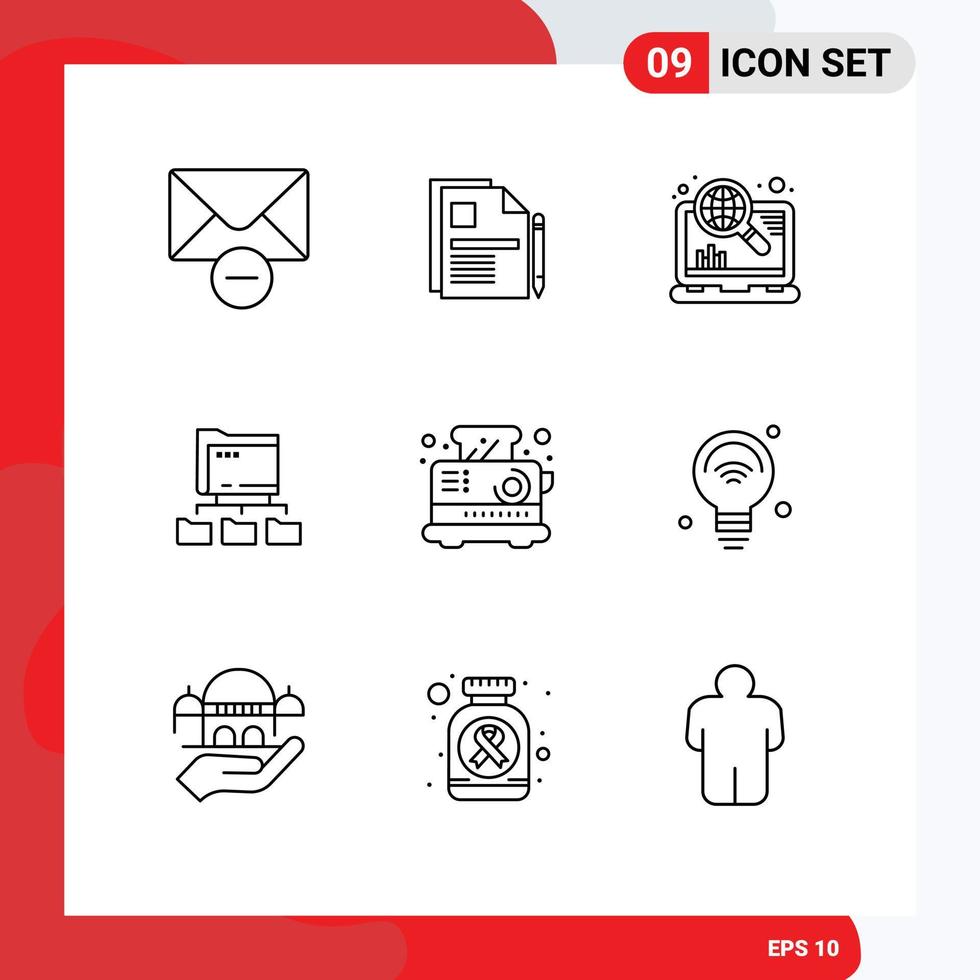 Editable Vector Line Pack of 9 Simple Outlines of electrical computing internet network folder Editable Vector Design Elements Free Vector