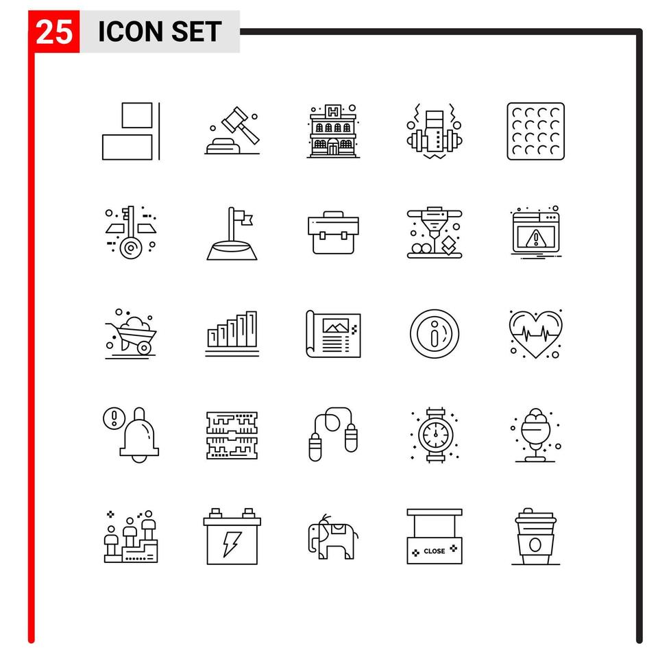 Modern Set of 25 Lines and symbols such as blueprint waffle building wafer weight Editable Vector Design Elements
