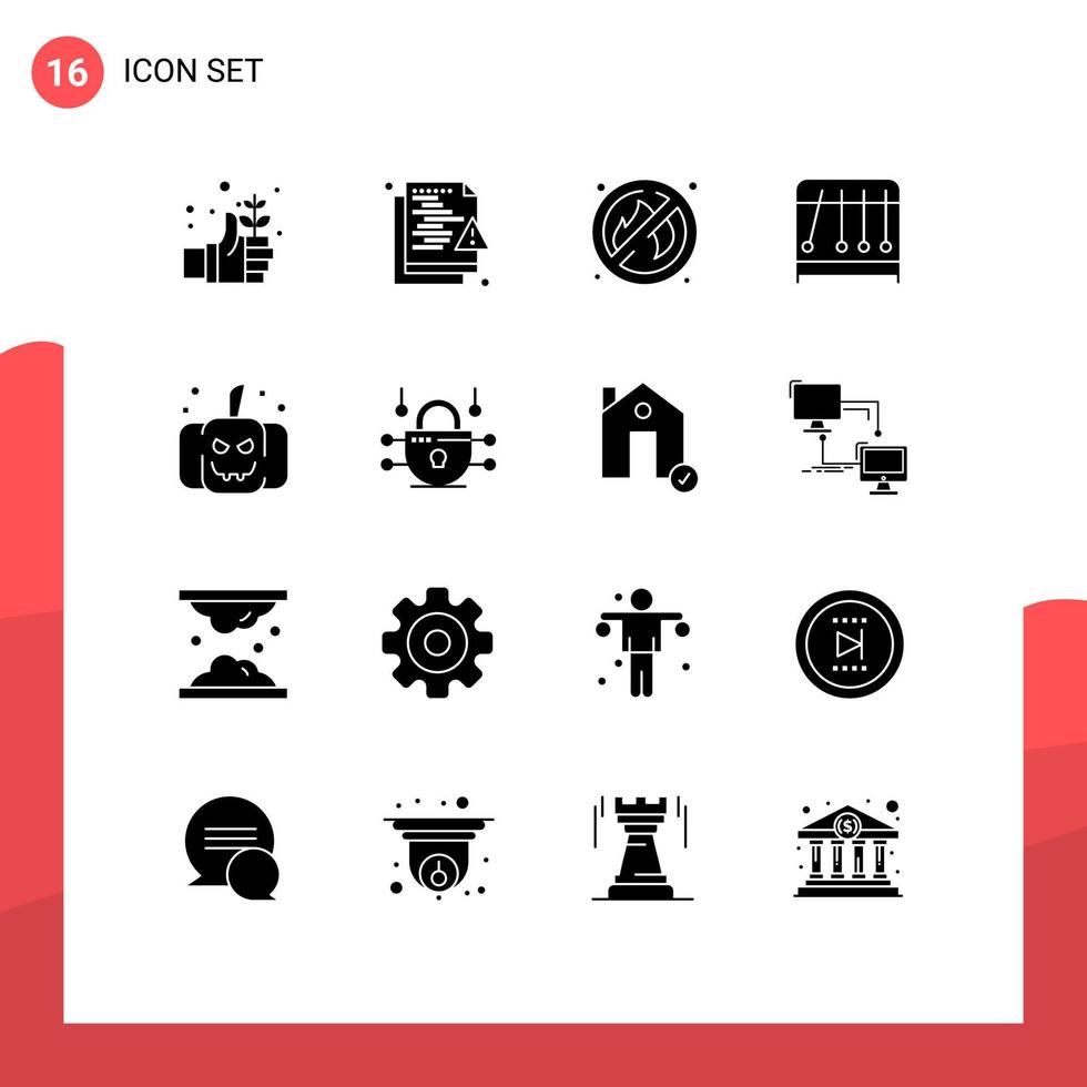 Pictogram Set of 16 Simple Solid Glyphs of scary halloween security science physics Editable Vector Design Elements
