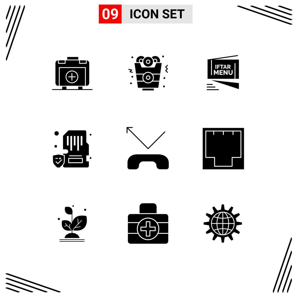 Editable Vector Line Pack of 9 Simple Solid Glyphs of call memory menu lock card Editable Vector Design Elements