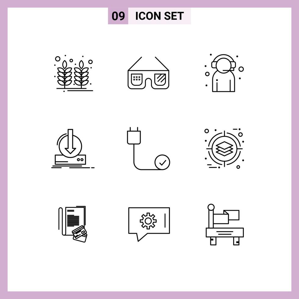 Modern Set of 9 Outlines Pictograph of game dlc assistant content support Editable Vector Design Elements Free Vector