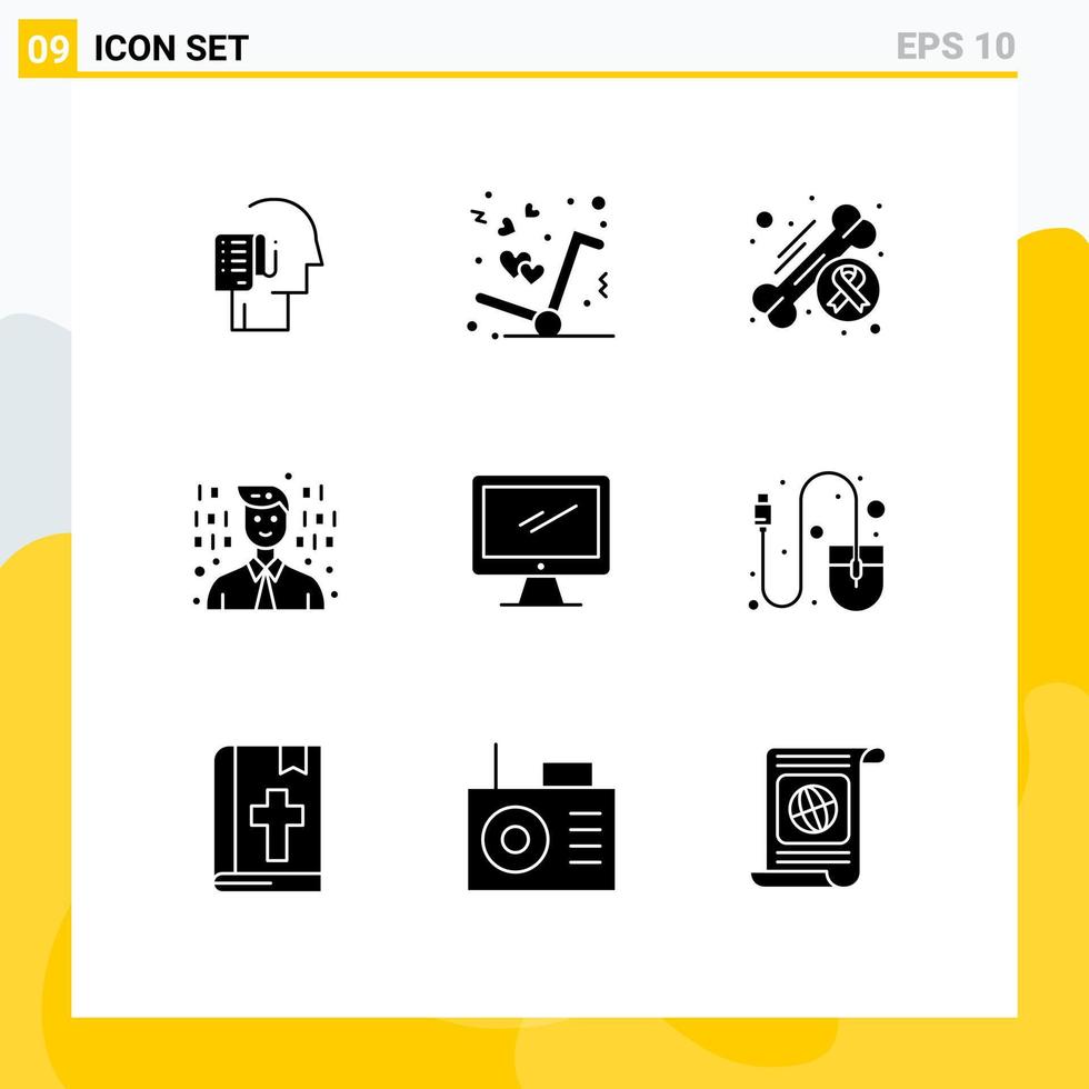 Universal Icon Symbols Group of 9 Modern Solid Glyphs of computer programmer love development day Editable Vector Design Elements Free Vector