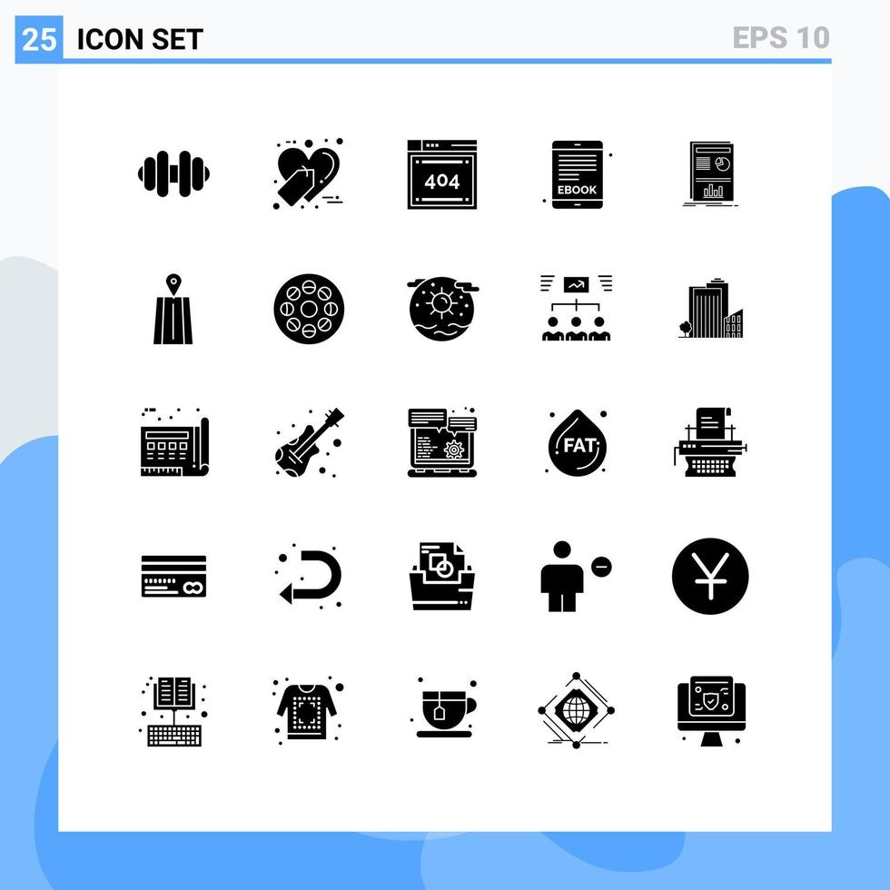 Group of 25 Modern Solid Glyphs Set for navigation graph code layout internet book Editable Vector Design Elements