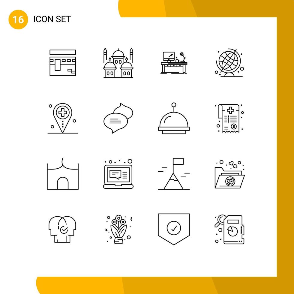 Modern Set of 16 Outlines and symbols such as education office moon lamp computer Editable Vector Design Elements Free Vector