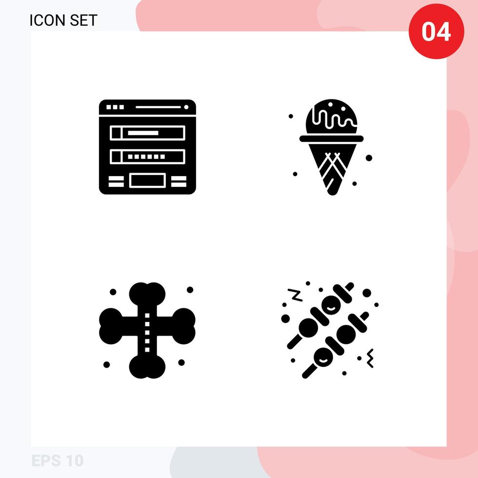 Pictogram Set of 4 Simple Solid Glyphs of flowchart cross sitemap ice cream halloween Editable Vector Design Elements Free Vector