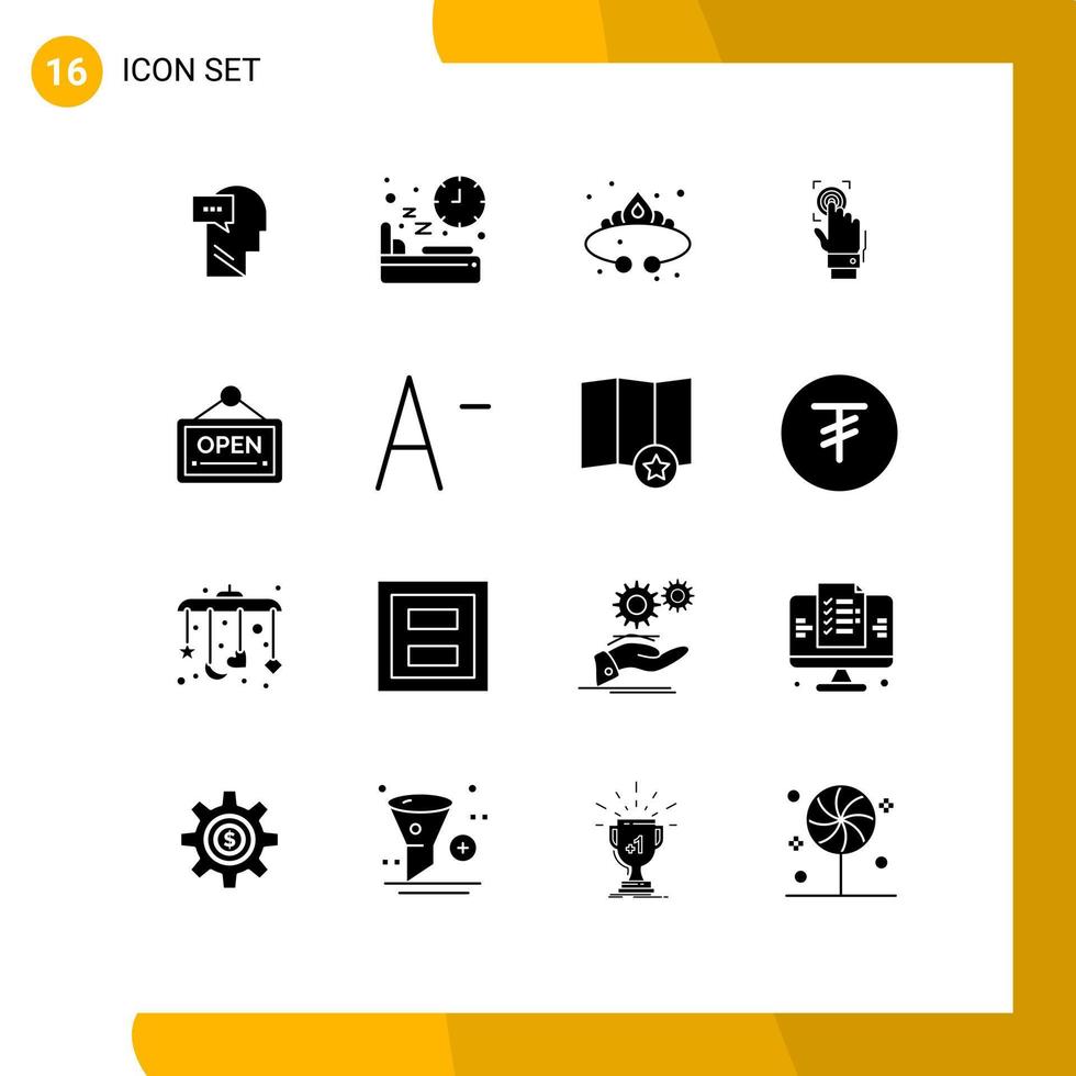 User Interface Pack of 16 Basic Solid Glyphs of scan identity time fingerprint jewelry Editable Vector Design Elements Free Vector