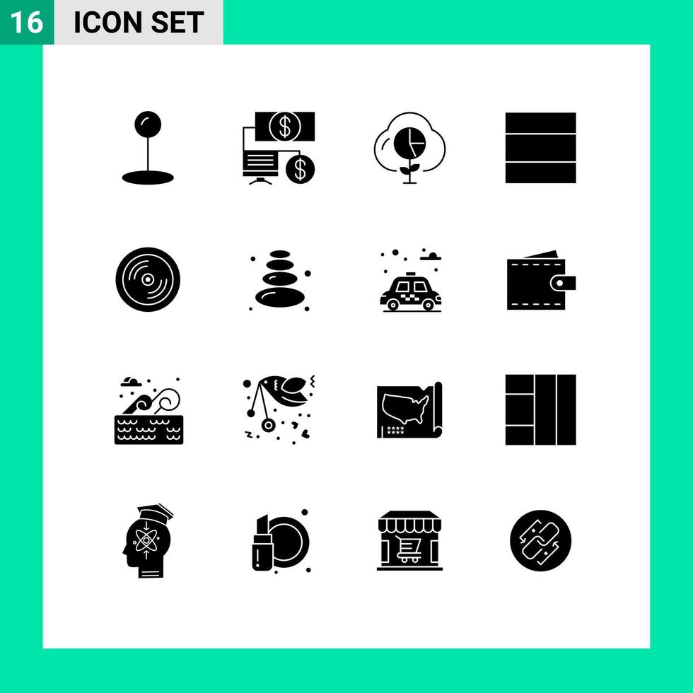 16 Solid Glyph concept for Websites Mobile and Apps lotus education graph disk cd Editable Vector Design Elements
