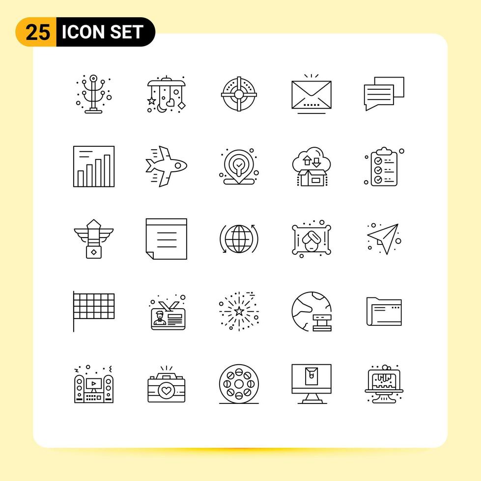 Pictogram Set of 25 Simple Lines of message chat arrow open letter Editable Vector Design Elements