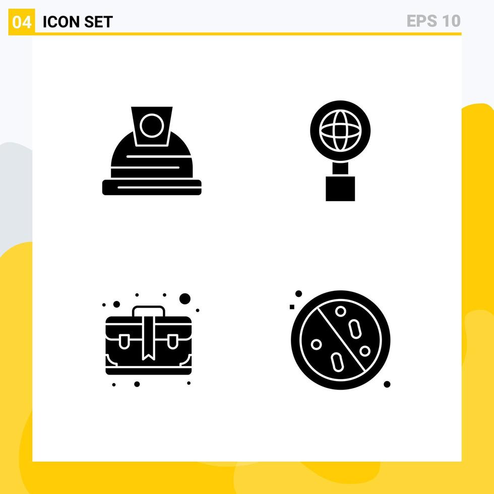 Mobile Interface Solid Glyph Set of 4 Pictograms of architecture case globe bag virus Editable Vector Design Elements Free Vector