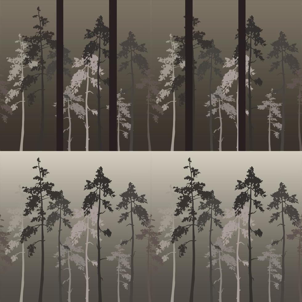 Geometric seamless background of gradient green rows of diamonds with fir tree silhouettes. Forest in the mist Pro Vector