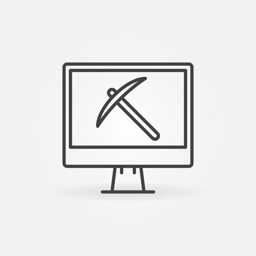 Pick Axe on Computer Display line vector concept icon Pro Vector