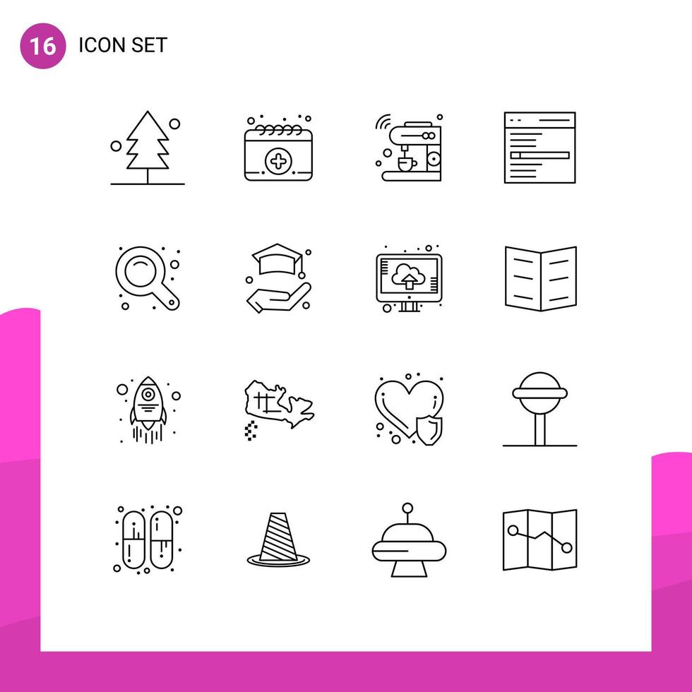 16 Universal Outlines Set for Web and Mobile Applications maximize search internet interface communication Editable Vector Design Elements