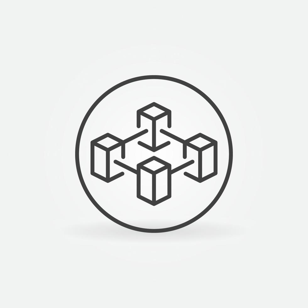 Block-Chain in circle vector concept icon. Blockchain with 4 Blocks round symbol Pro Vector