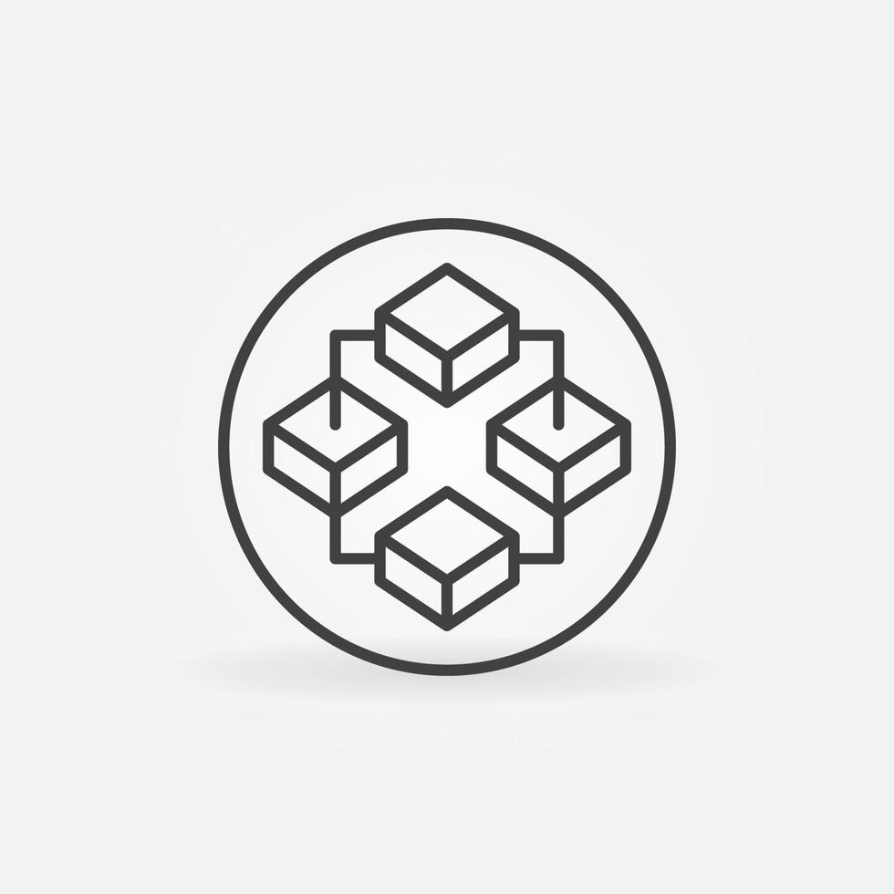 Blockchain with Four Blocks in circle vector concept linear round icon Pro Vector