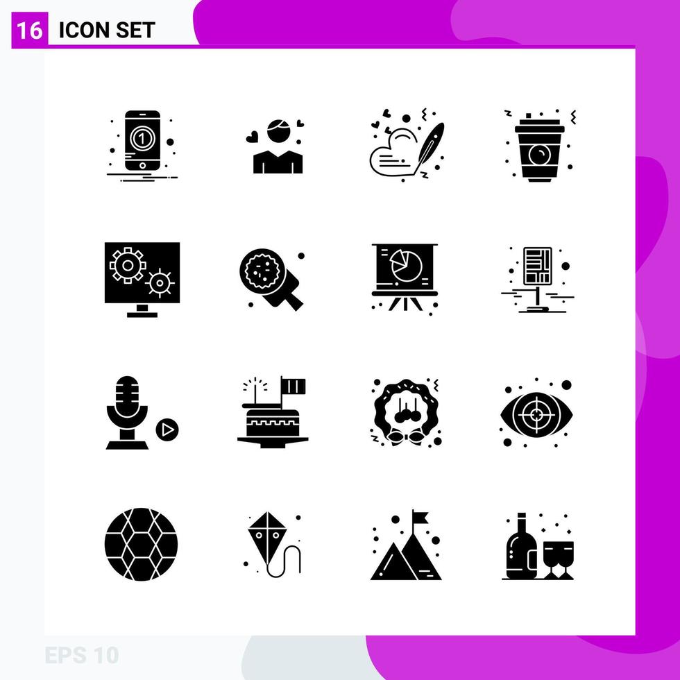 Solid Icon set Pack of 16 Glyph Icons isolated on White Background for Web Print and Mobile vector