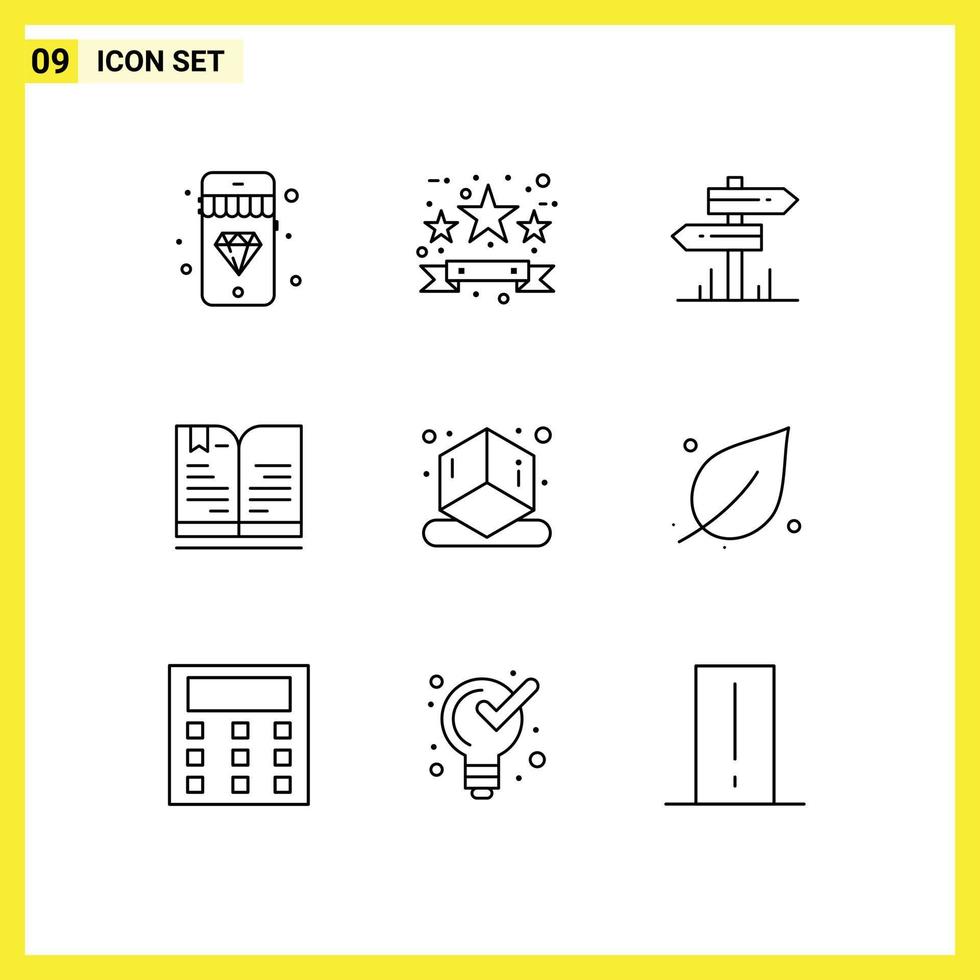 Pictogram Set of 9 Simple Outlines of shape cube hotel note book Editable Vector Design Elements Free Vector