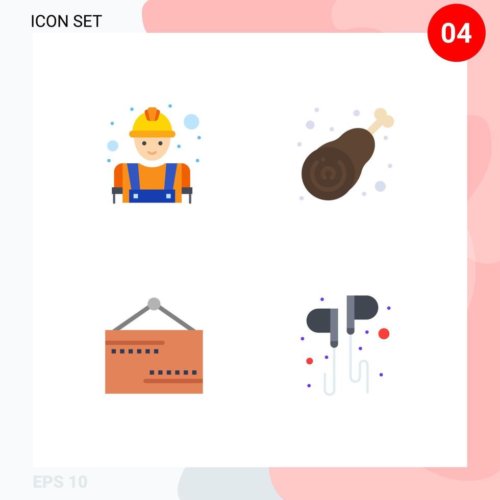 Set of 4 Modern UI Icons Symbols Signs for builder board labour chicken open Editable Vector Design Elements Free Vector