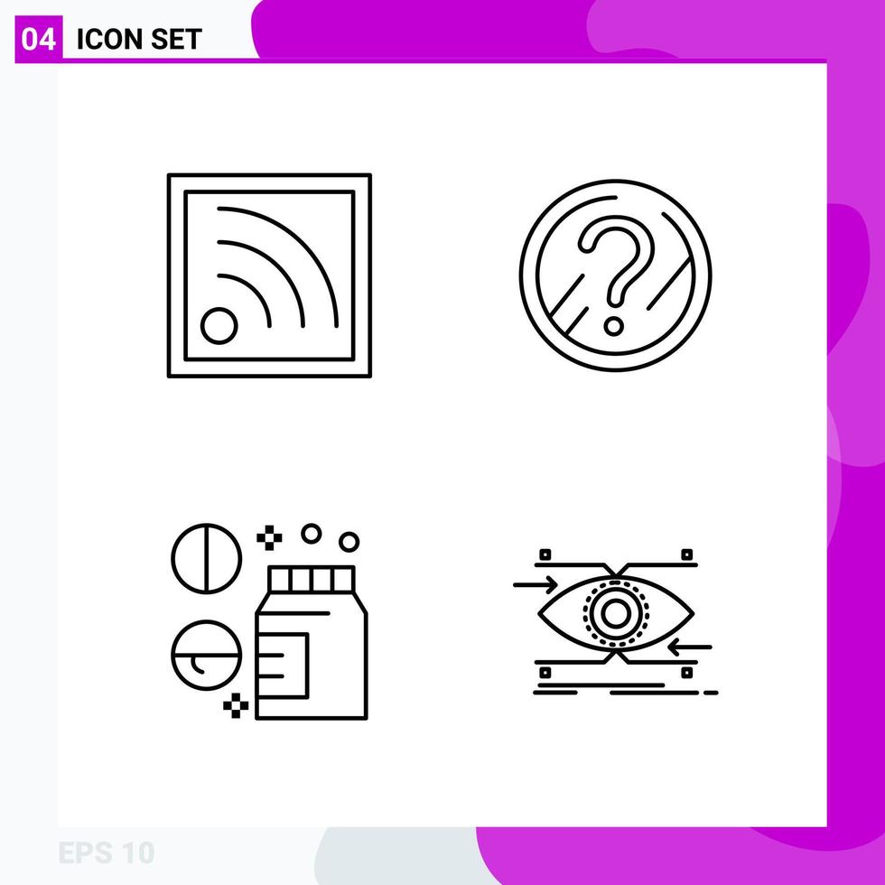 Line Icon set Pack of 4 Outline Icons isolated on White Background for Web Print and Mobile Creative Black Icon vector background Free Vector