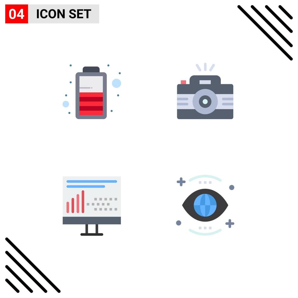 Editable Vector Line Pack of 4 Simple Flat Icons of battery design camera picture programing Editable Vector Design Elements Free Vector