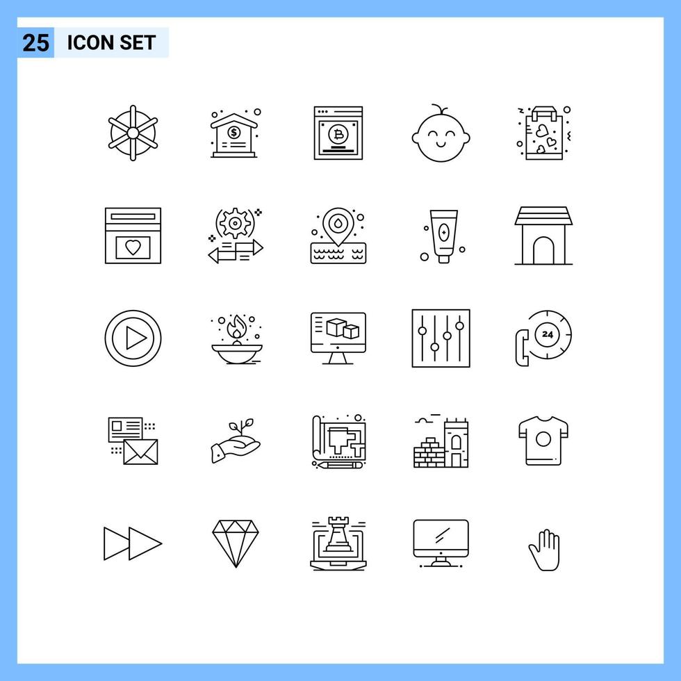 User Interface Pack of 25 Basic Lines of paper favorite comparing buy child Editable Vector Design Elements Free Vector