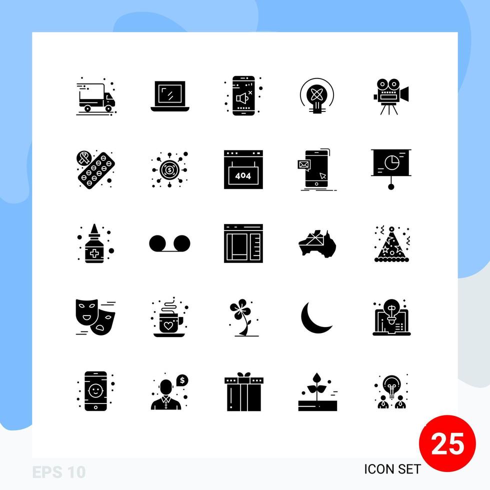 25 Universal Solid Glyphs Set for Web and Mobile Applications education movi volume camera idea Editable Vector Design Elements