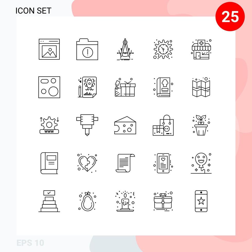 25 User Interface Line Pack of modern Signs and Symbols of chemists shop time precision setting measurement Editable Vector Design Elements Free Vector