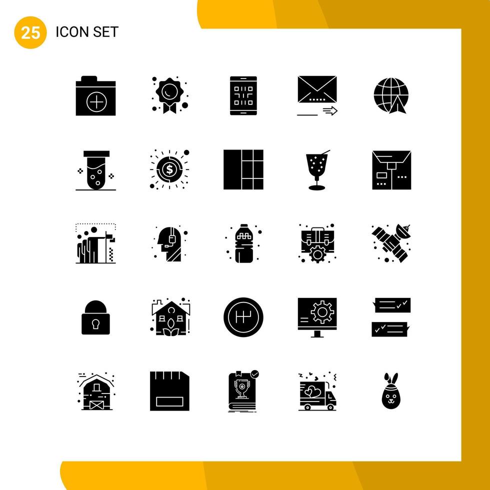 Group of 25 Solid Glyphs Signs and Symbols for globe next mobile navigation email Editable Vector Design Elements