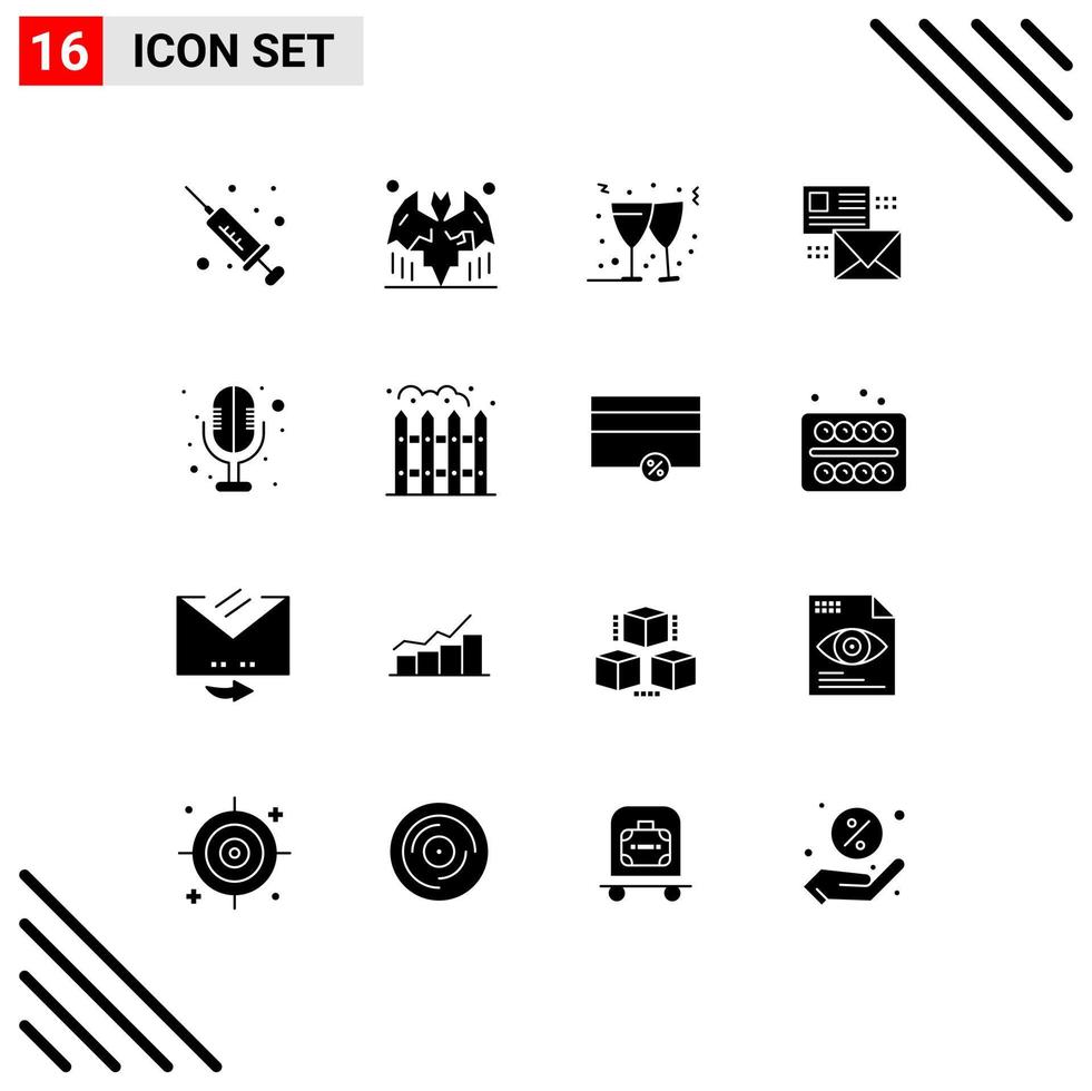 Mobile Interface Solid Glyph Set of 16 Pictograms of microphone mail christmas list e Editable Vector Design Elements