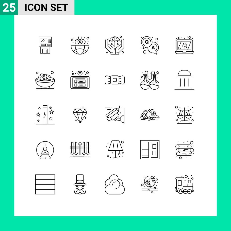 Editable Vector Line Pack of 25 Simple Lines of solution answer business safe hands Editable Vector Design Elements Free Vector