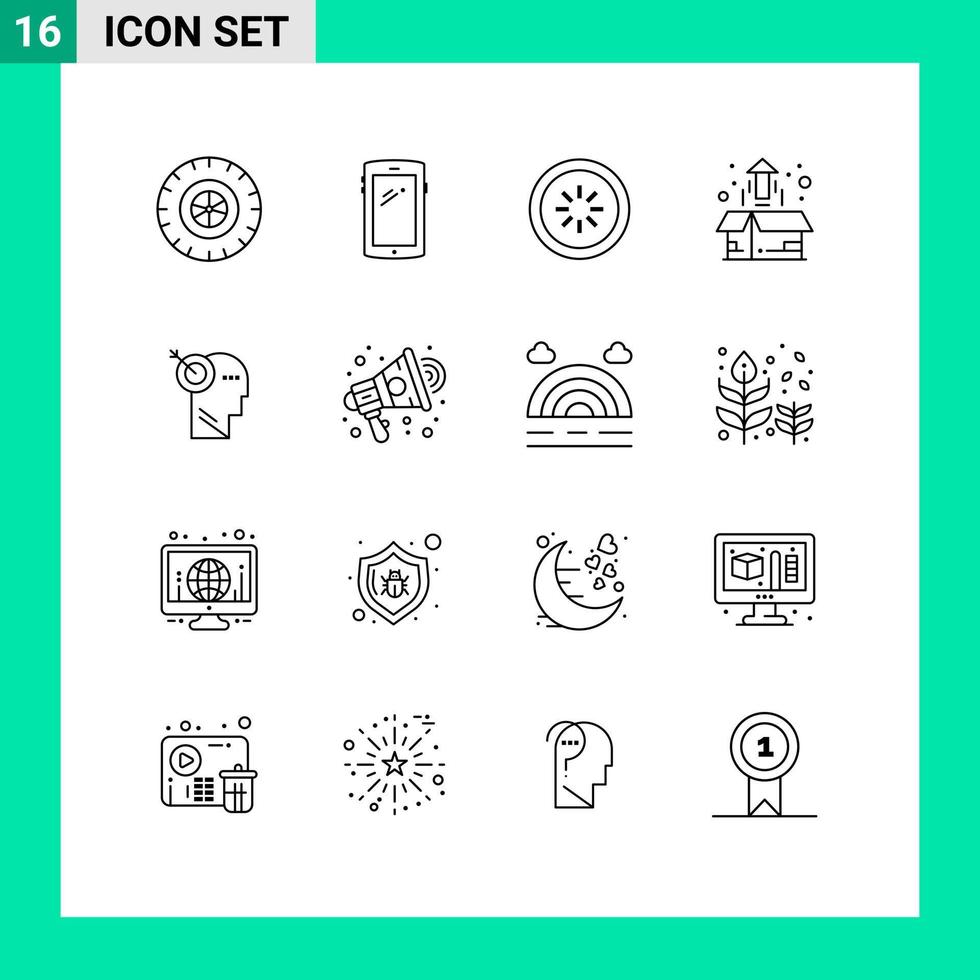 Pictogram Set of 16 Simple Outlines of product growth market buffer grow loading Editable Vector Design Elements