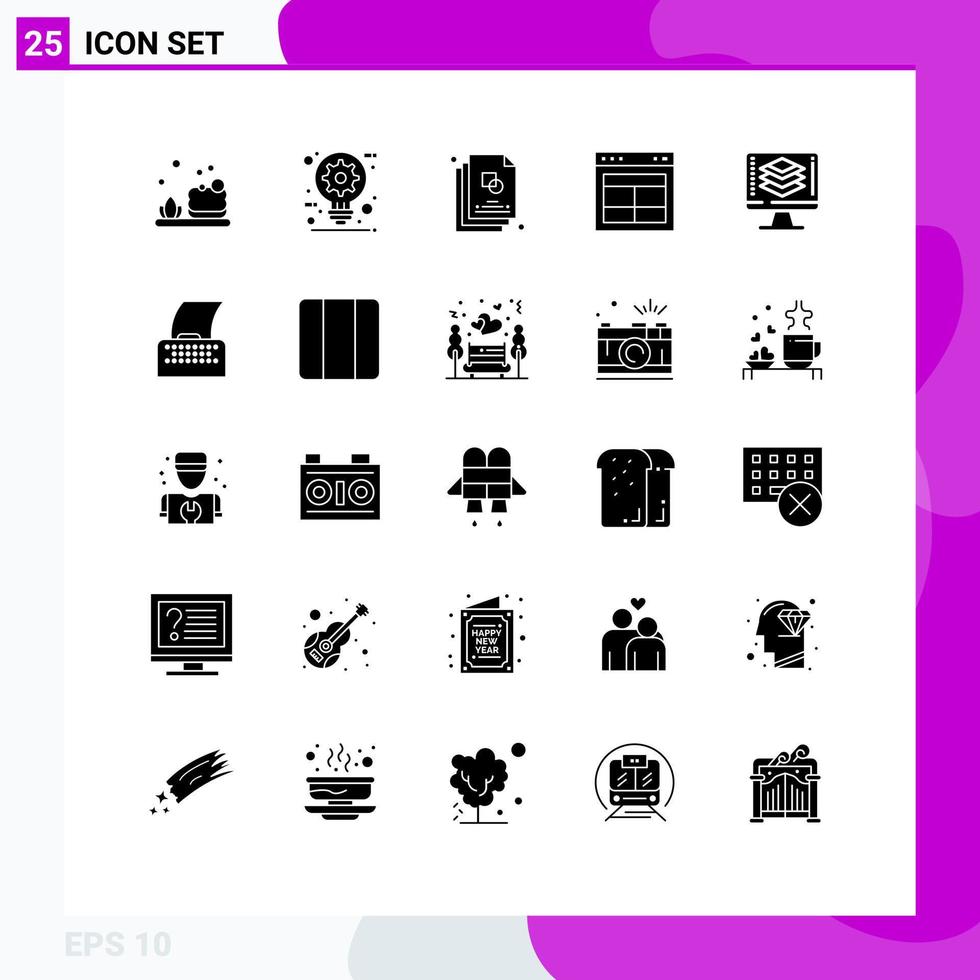 Pack of 25 Modern Solid Glyphs Signs and Symbols for Web Print Media such as programming text sketch layout divide Editable Vector Design Elements