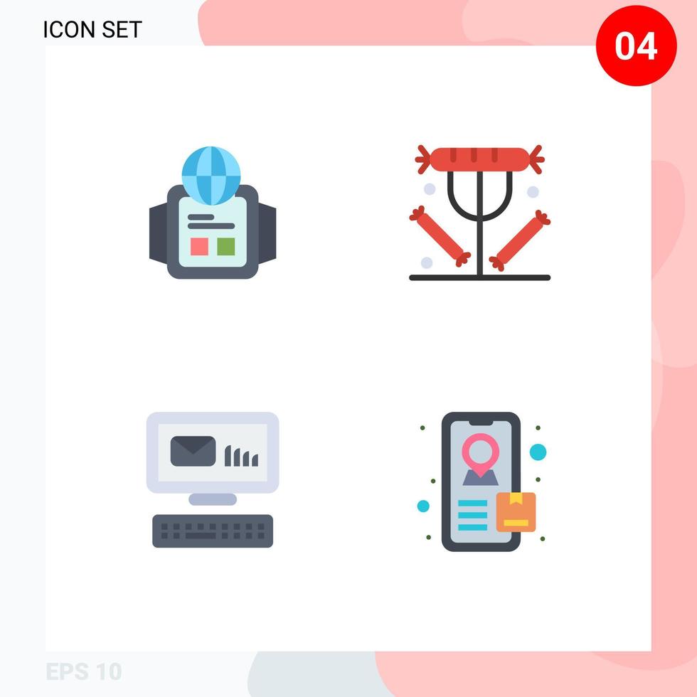 Set of 4 Vector Flat Icons on Grid for technology envelope breakfast food message Editable Vector Design Elements