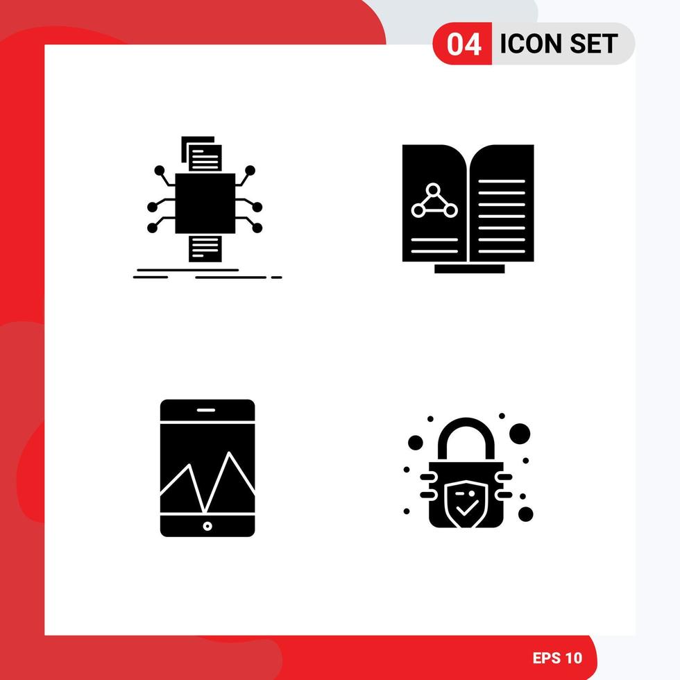 Pack of 4 creative Solid Glyphs of analysis analytics processing test smartphone Editable Vector Design Elements