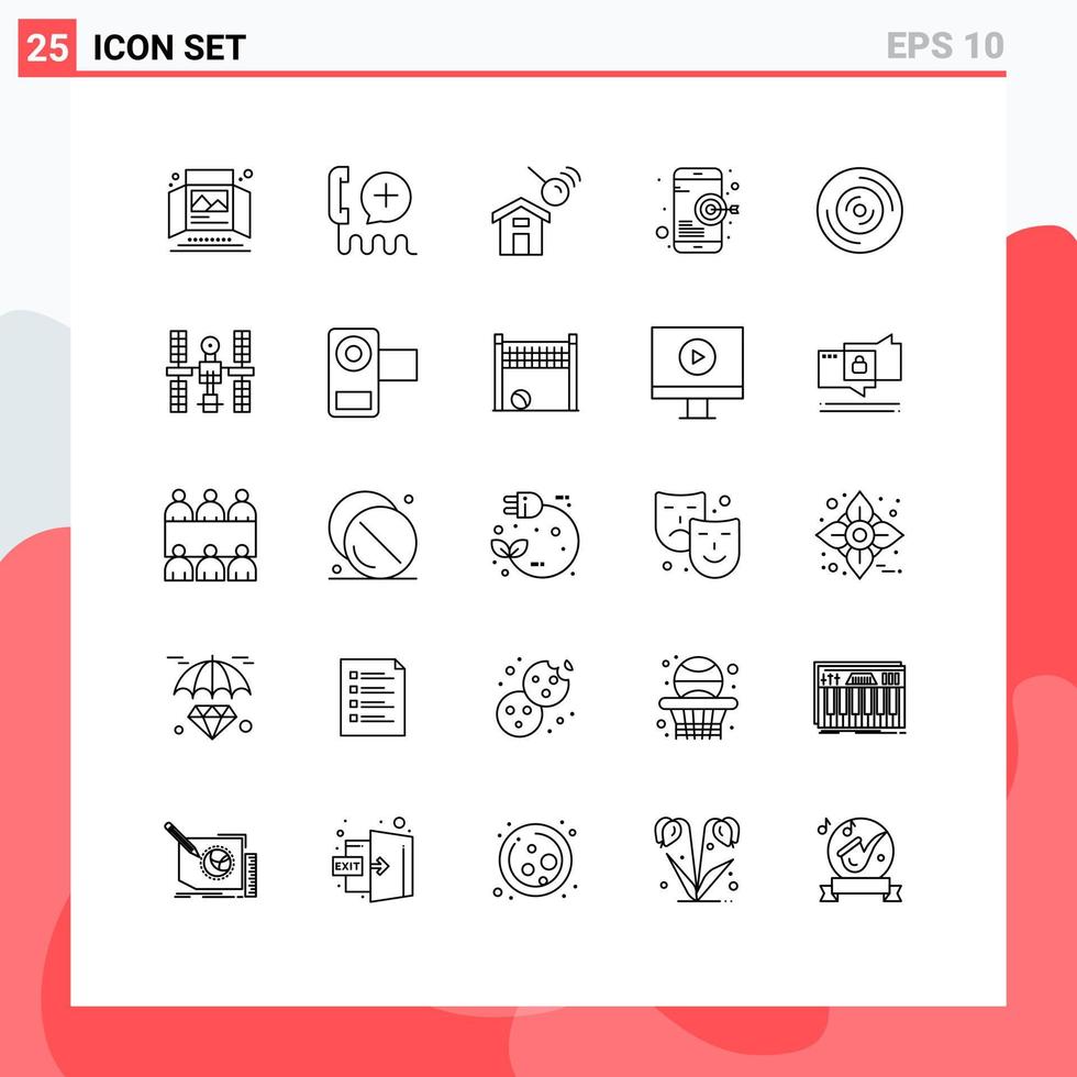Set of 25 Vector Lines on Grid for mobile seo interface goal house Editable Vector Design Elements