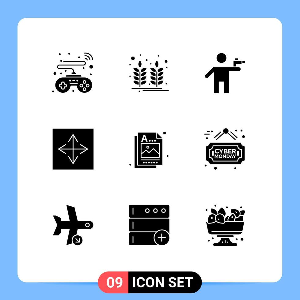 Group of 9 Modern Solid Glyphs Set for designer browser gunman arrow angular Editable Vector Design Elements
