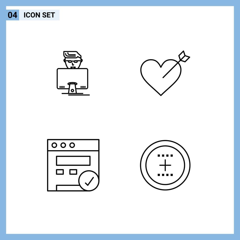 Stock Vector Icon Pack of 4 Line Signs and Symbols for hacker web programmer love circle Editable Vector Design Elements Free Vector