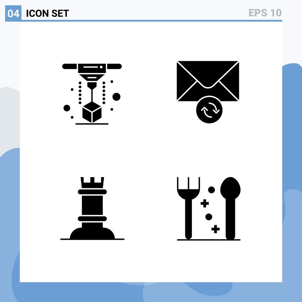 Stock Vector Icon Pack of 4 Line Signs and Symbols for modeling rock laser sync fork Editable Vector Design Elements