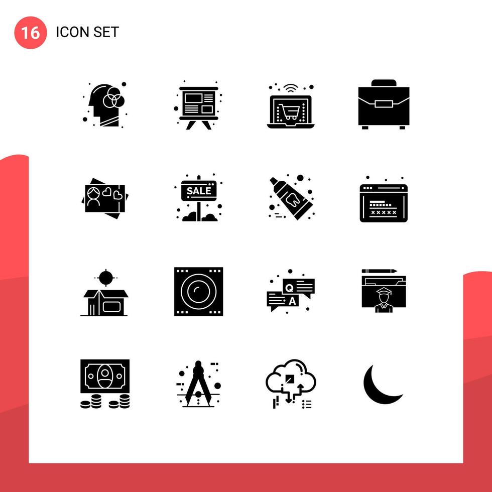 Set of 16 Modern UI Icons Symbols Signs for heart card online bag gateway Editable Vector Design Elements