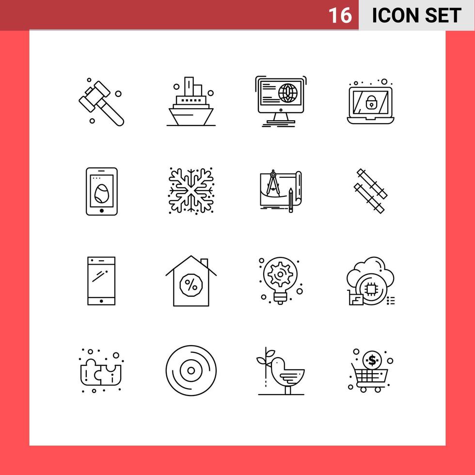 16 User Interface Outline Pack of modern Signs and Symbols of egg easter development mobile laptop Editable Vector Design Elements Free Vector