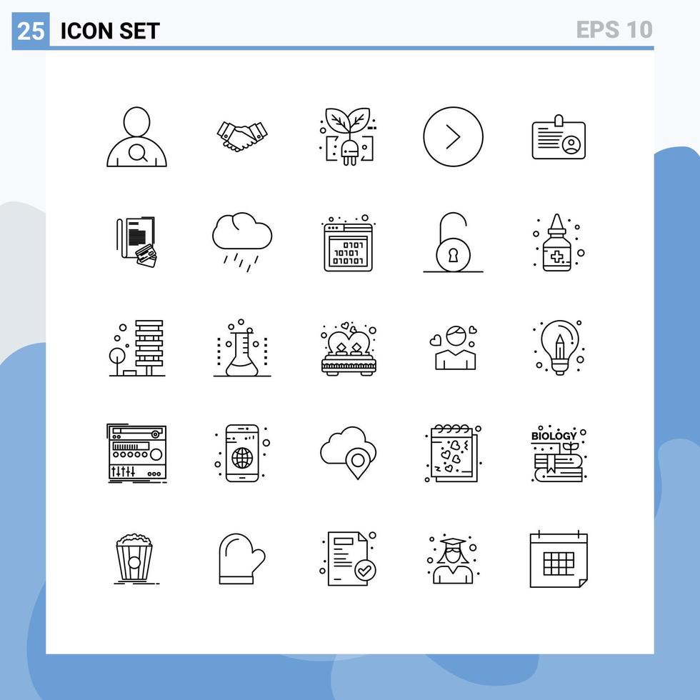 Mobile Interface Line Set of 25 Pictograms of id user ecology right arrow Editable Vector Design Elements Free Vector