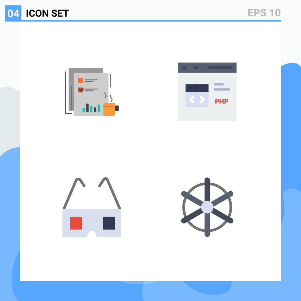 Set of 4 Vector Flat Icons on Grid for coffee develop news paper php Editable Vector Design Elements Free Vector