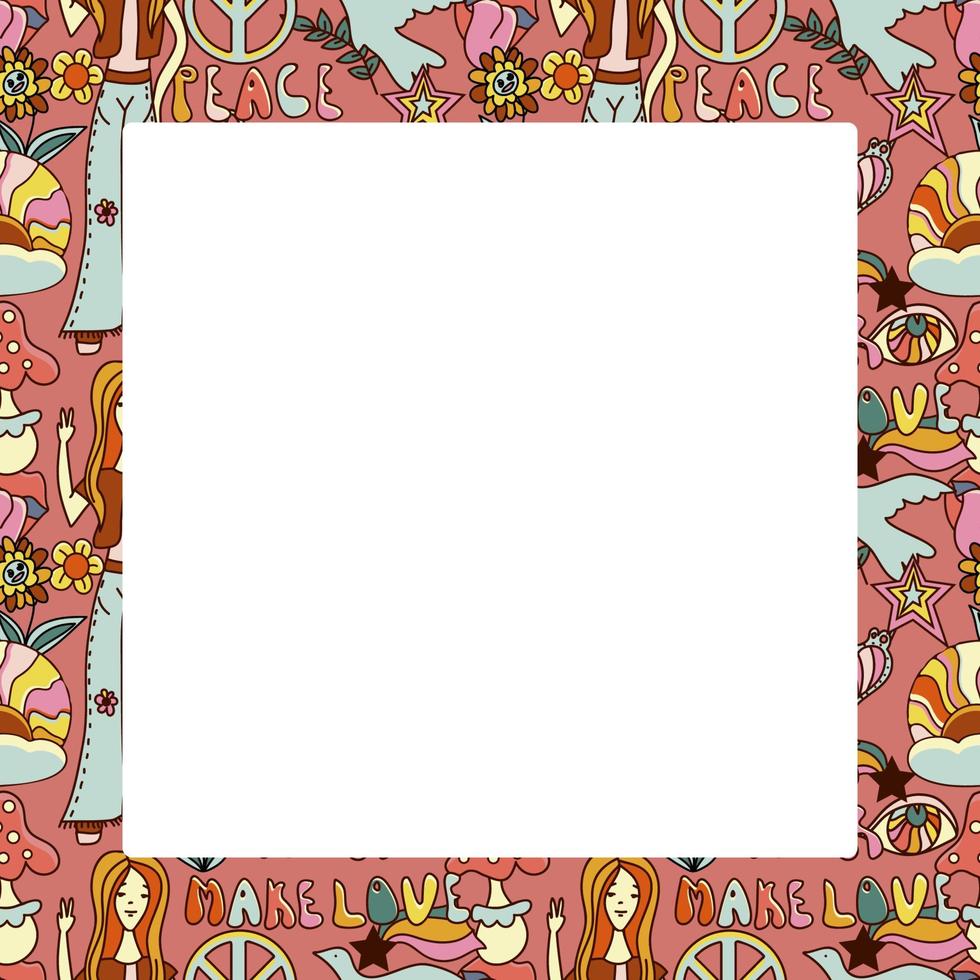 Vector square frame. Groovy retro background in 70s style. Pro Vector